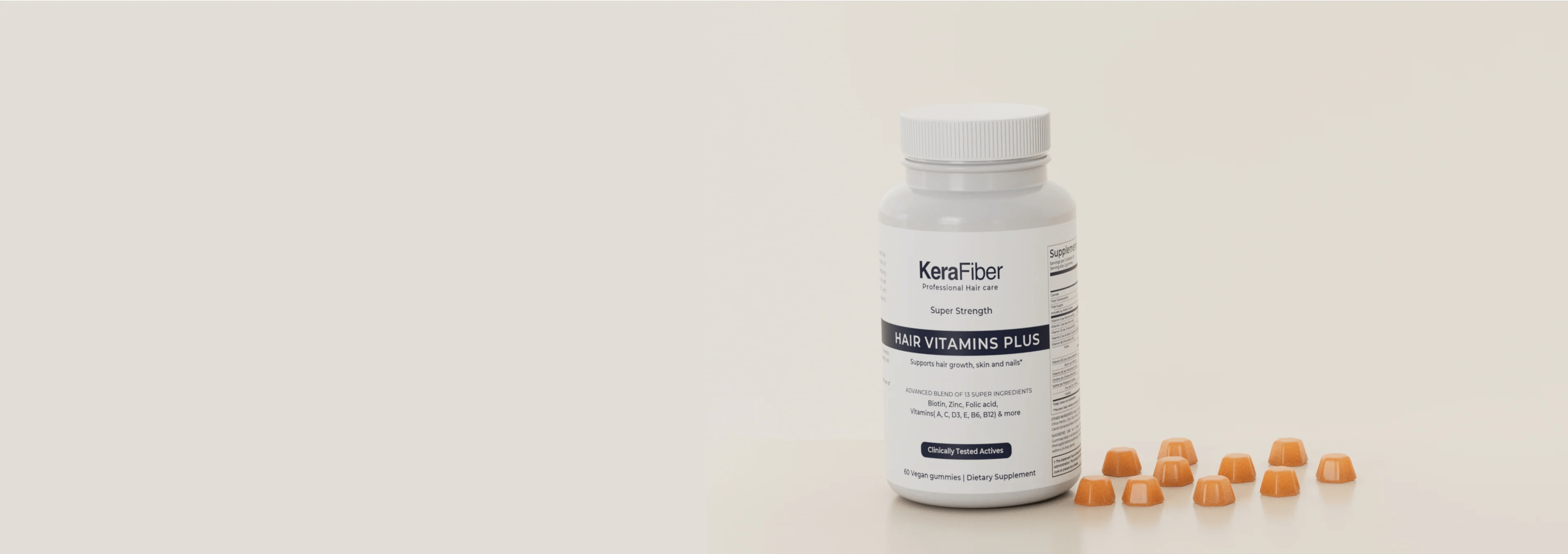 KeraFiber Hair Vitamin Plus chewable gummies contain clinically tested actives to promote hair growth as well as support overall hair vitality and strength.